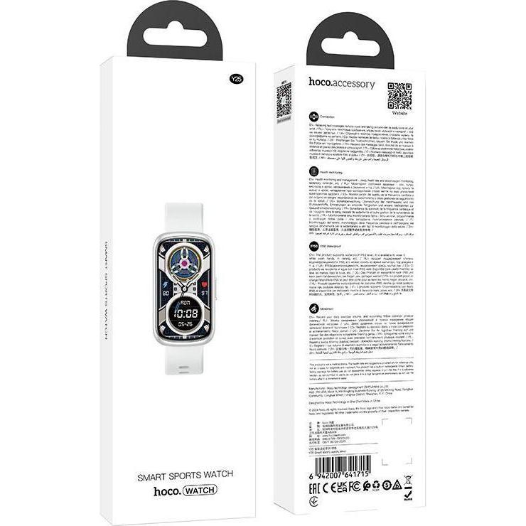 The elegant, waterproof Hoco Y25 smartwatch is perfect for work, home, travel or exercise. It has a color screen, multi-sport modes, measures heart rate and saturation and monitors sleep. It allows you to read notifications.