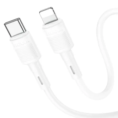 The Hoco Victory X83 cable with USB-C–Lightning connector. Supports charging and data transmission. It is characterized by a strong PVC braid and a reinforced structure.